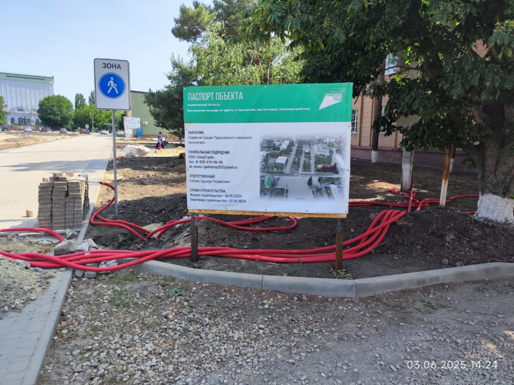 Объект благоустройства общественной территории: «Центральная площадь по адресу: п. Тарасовский, пер.Почтовый,2а (благоустройство)», реализация которой предусмотрена по программе «Формирование комфортной городской среды» в 2025 году.